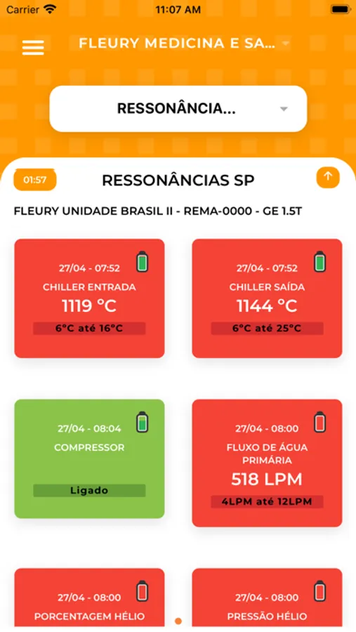 Faça o monitoramento da Temperatura, Umidade, Pressão Diferencial (Positiva/Negativa) e CO2 dos seus Ambientes, Cadeias de Frios e parâmetros das Ressonâncias Magnéticas como entrada e saída de Água do Chiller, Compressor, Nível e Percentual do Hélio.