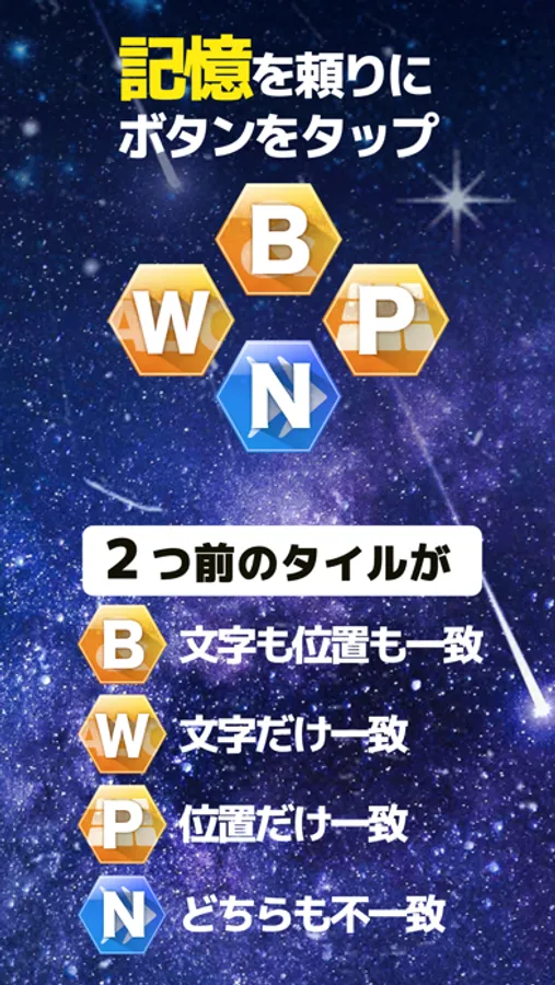 次々に変化するタイルのアルファベットと場所を記憶して、