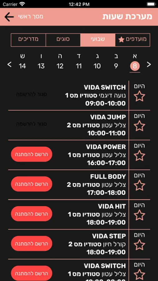 כל מה שצריך לרישום מראש לשעורי סטודיו, ספינינג, פילאטיס, מחול ועוד.