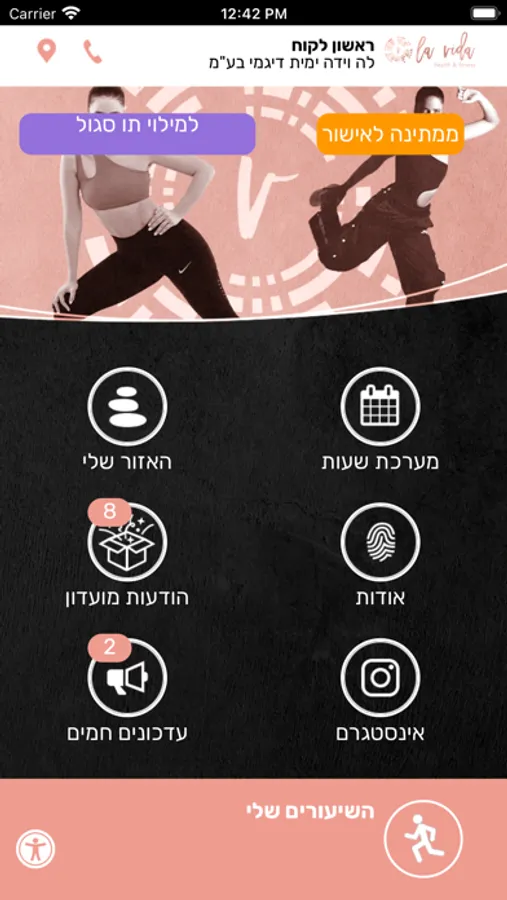 חדש! מהיום כל הקשר עם מועדון הספורט והסטודיו שלך אצלך בטלפון החכם!