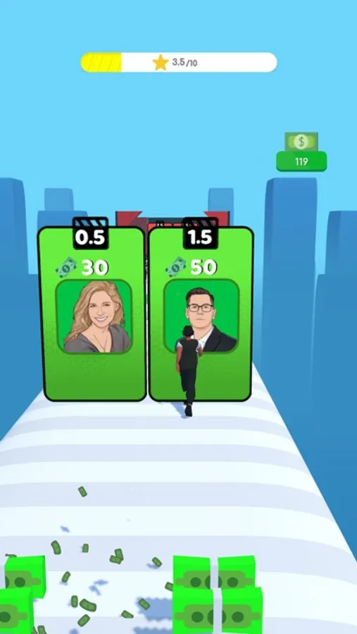 Collect coins and invest your money in actors, increase your star rating by collecting movie objects. Take a successful film to the final and get the oscar award! If you deliver a failed movie, you're slapped!
