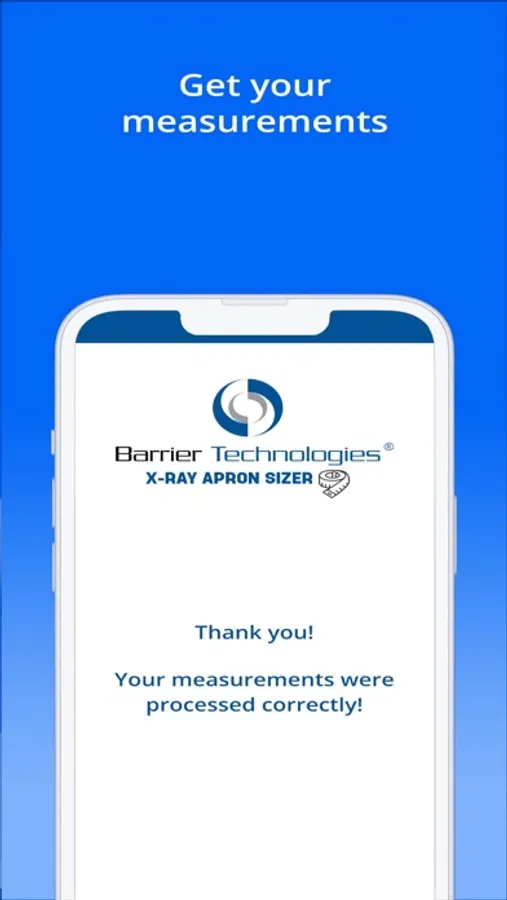 Using just the front camera of any smartphone or tablet, X-ray Apron Sizer’s patented body-measuring platform captures a user’s body measurements by applying a proprietary combination of computer vision, deep-learning computer algorithms and artificial intelligence. After completing your scan, you will receive a notification that your personal measurements are ready for viewing on the app. Your measurements will also be sent to Barrier Technologies to start the X-ray Apron purchasing and manufacturing process.