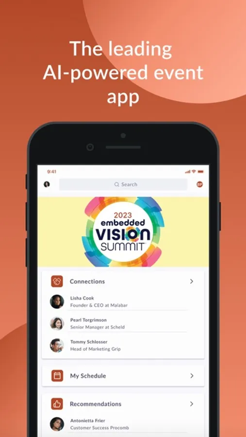 The Embedded Vision Summit app enables you to plan your event and connect with speakers and exhibitors. Inside the app you’ll find the full agenda, a map of the event, speaker bios and session abstracts, and a complete listing of our technology exhibits. You’ll also find AI-driven matchmaking tools to help you make the most valuable connections at this year’s Summit. Use the app to find, connect, and chat with others. You can even schedule meetings and manage your availability.