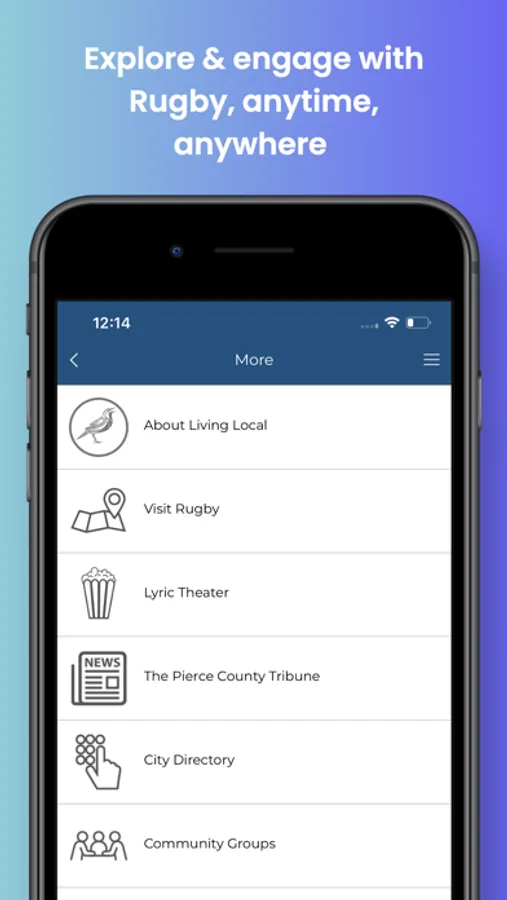 The Rugby app is an app designed for residents and visitors of Rugby, ND. The app is a community-reflective app that connects and empowers Rugby residents and visitors with critical, timely and relevant content they want to see. Content includes but not limited to articles, events, videos and resources.