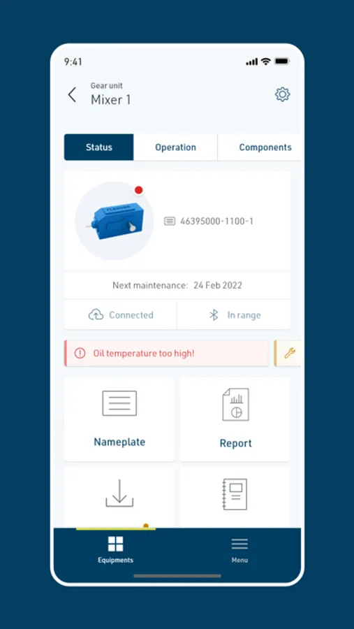 Operate the AIQ Core at your Flender gear unit on site. Simply connect via Bluetooth when in proximity.