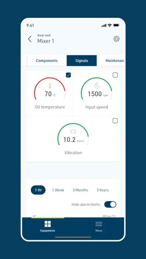 The app supports you to integrate all sensor values into your drive control system on site, to always have a view on your processes.