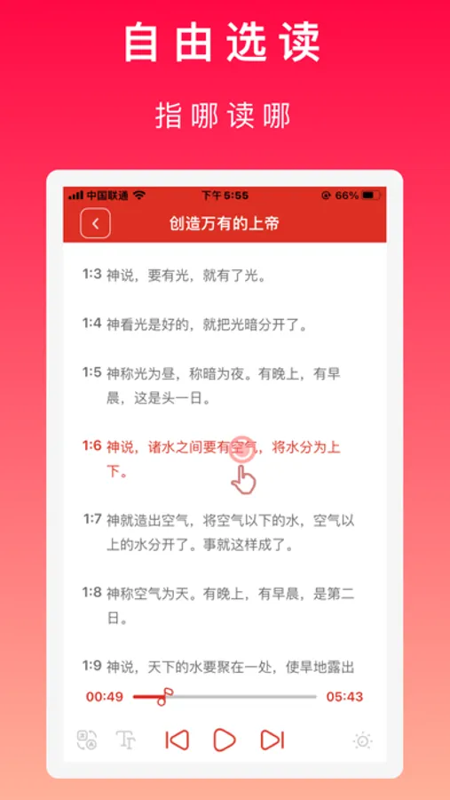 - 语音朗读:加入了人声朗读 ,忙碌无暇时也可聆听《圣经》;同时支持倍速阅读;