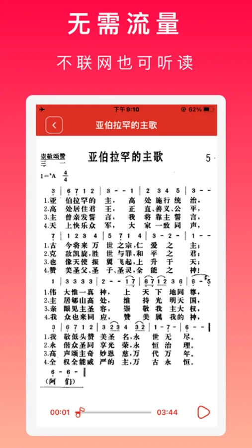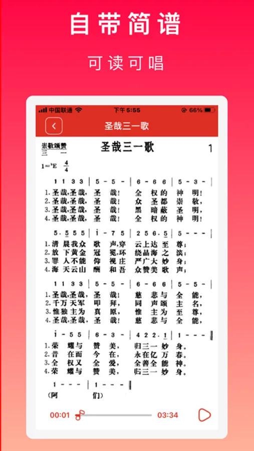- 自带简谱:每一首歌都自带歌词,歌谱;