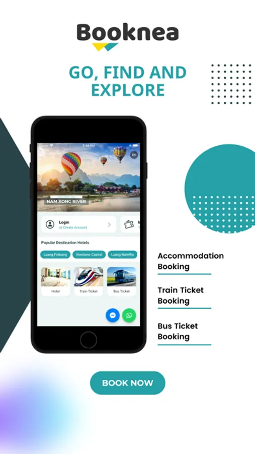 Booknea is the Lao first local OTA where you can have a choice of cheaper hotel prices, buses, train, event tickets, and more travel productivity is coming soon...