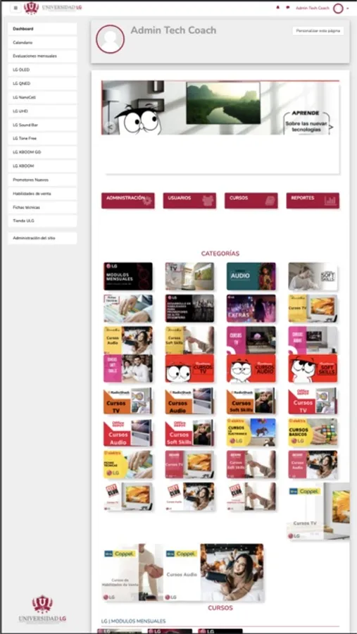 LG H&E University is a digital training and training tool for internal and external personnel related to the LG brand. At LG University you can find courses on products, information technology, tools for the development of skills and sales techniques, test to measure knowledge, dynamics, and interactive materials that will help strengthen all the learning acquired on the platform, join and discover a world full of technology at LG University.
