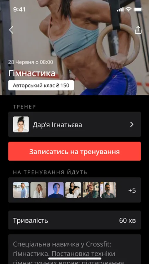 За допомогою нього, ви можете записуватись на групові та індивідуальні тренування до наших тренерів, купувати клубні карти, та дізнаватись більше про унікальну програму занять CrossFit.