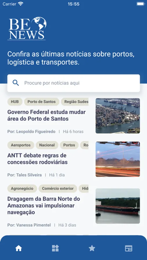Este é o aplicativo do BE News, portal e jornal de notícias sobre logística, transportes e o setor portuário. Com conteúdo totalmente gratuito, ele traz os principais acontecimentos desses segmentos, a cobertura em tempo real dos fatos mais marcantes e análises de especialistas e lideranças empresariais. Também é possível ativar a função de notificação e ser avisado sobre os mais importantes fatos do dia na tela do seu smartphone.