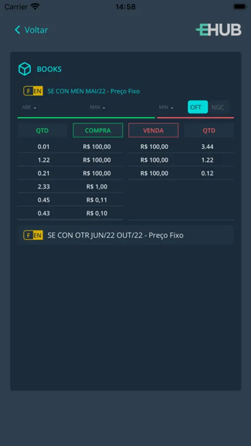O aplicativo EHUB é uma nova forma de se permitir que o cliente BBCE navegue pelos preços praticados no mercado de livre comercialização de energia e também possa acompanhar o book, consultando as ofertas inseridas, negócios e contratos realizados.