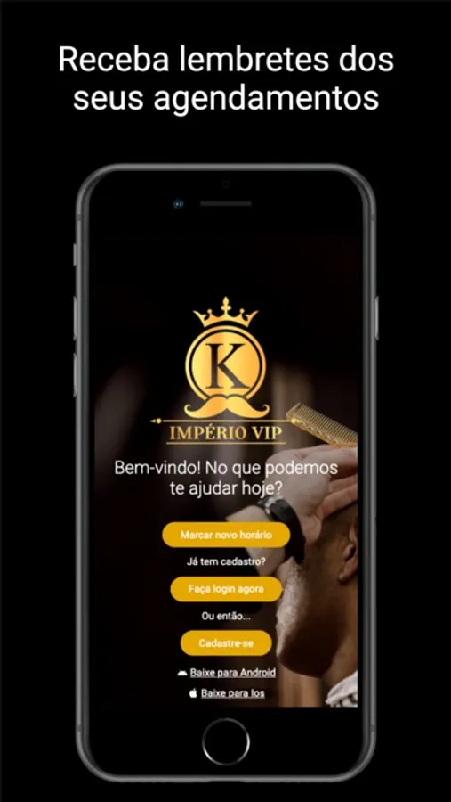 Com o aplicativo Império Vip - Barbearia fica mais fácil para você marcar seu horário conosco. Baixe agora e tenha na palma da sua mão todos os nossos benefícios!