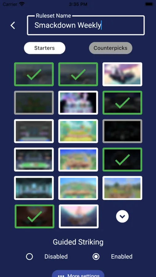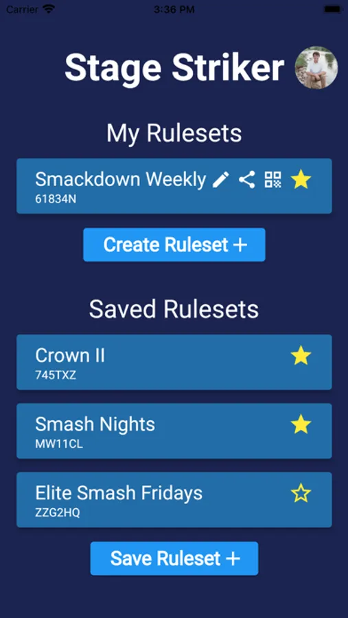 Share your rulesets via short generated codes, or subscribe to share your rulesets via QR codes. Scanning one of these codes without the app installed quickly opens a web view where you can view and strike the stages in your ruleset, no download required! Perfect for tournament organizers!
