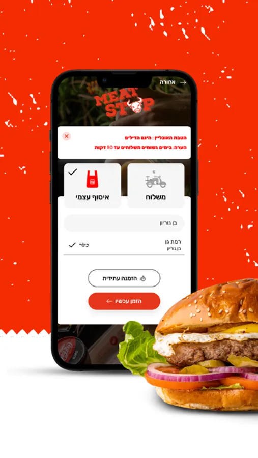 אפלקציית הזמנות אונליין של מיטסטופ, כאן תקבלו אופצייה לבצע הזמנת משלוח או איסוף מהחנות, שיהיה בתאבון
