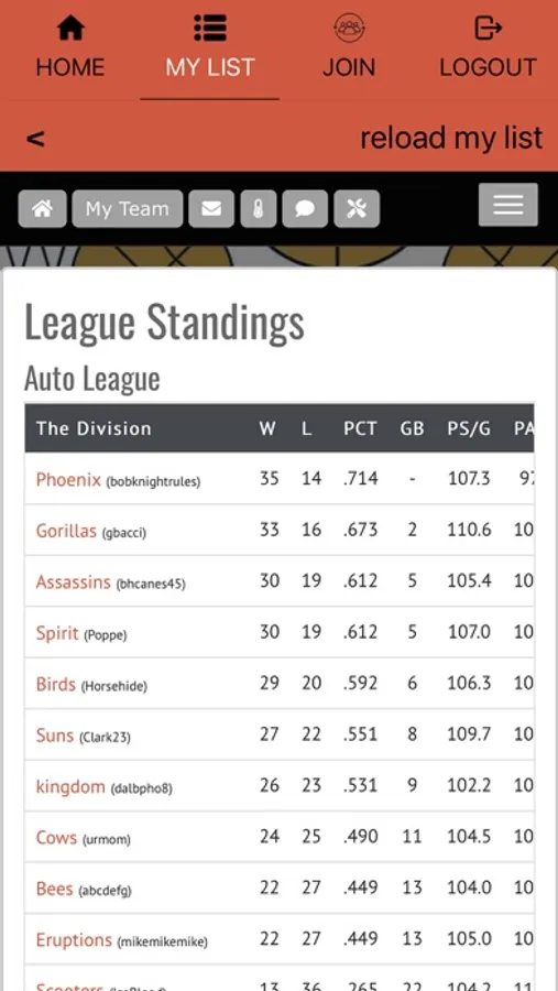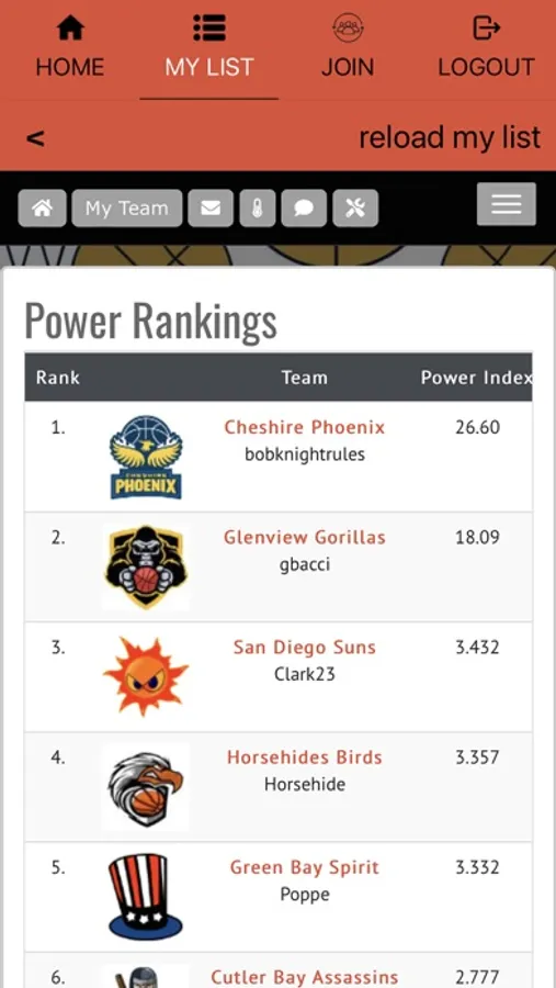 - Track team power rankings