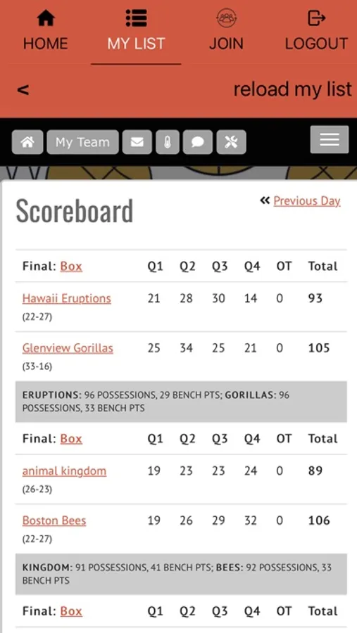 - View Box scores with detailed Play-by-Play of every game