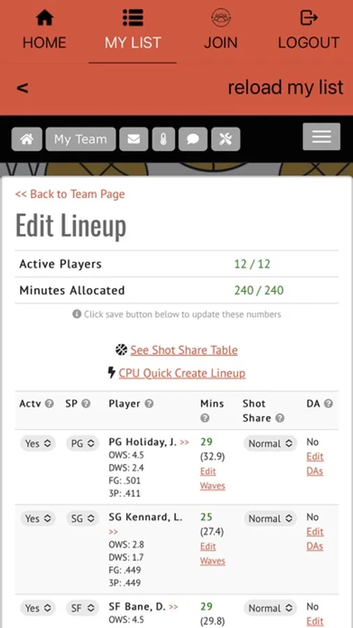 - Modify lineups, rotations and subs