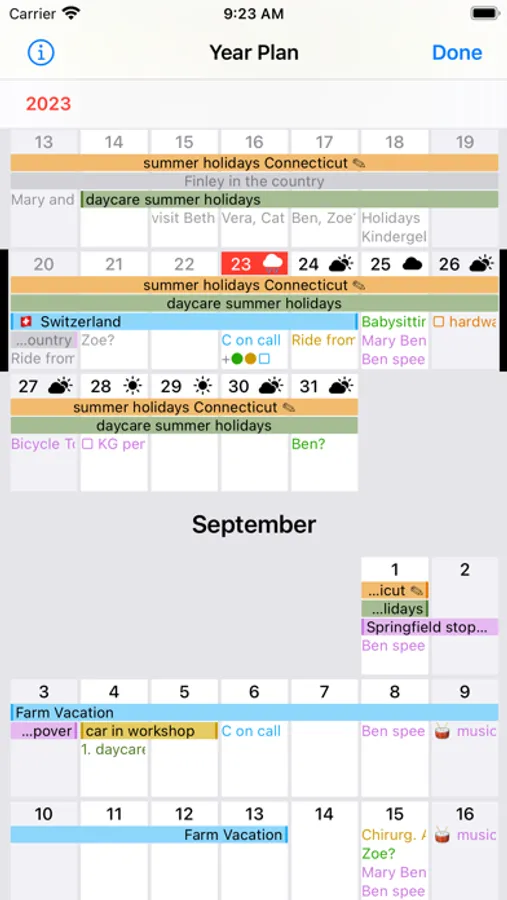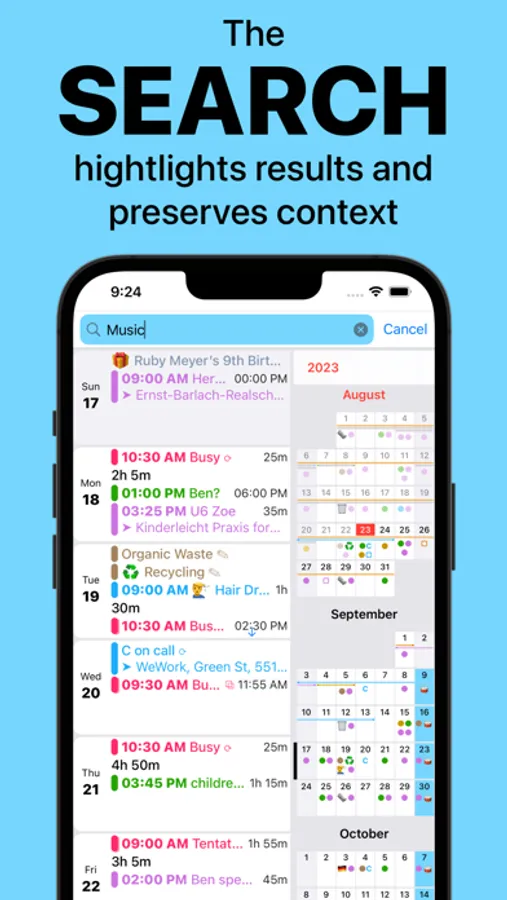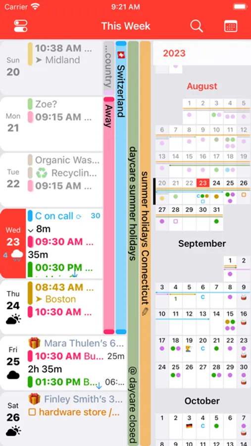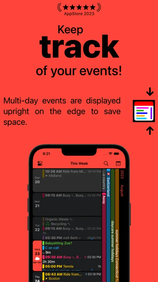 - Multi-day events are shown upright on the right hand side, contributing to extraordinary high clarity.