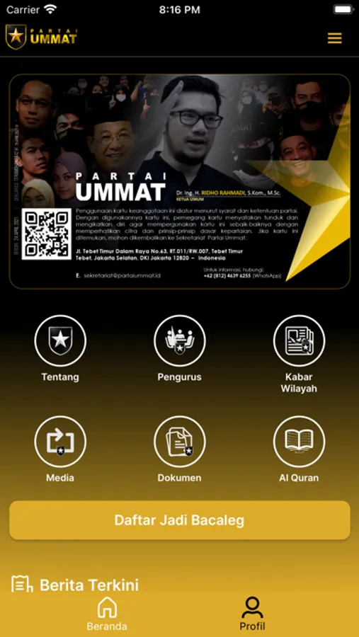 APLIKASI MOBILE - PARTAI UMMAT hadir sebagai langkah terobosan digital dalam kemudahan untuk mendaftar menjadi anggota Partai Ummat dan menjadi salah satu bagian dalam mewujudkan organisasi yang modern dan visioner. Kartu Tanda Anggota (KTA) secara digital dapat dimiliki disini, beberapa informasi tentang Partai Ummat, kegiatan, program, kabar wilayah, dokumen kepartaiaan, video, link jaringan media sosial, dan juga beberapa fitur lainnya seputar Partai Ummat disajikan dengan interaksi antarmuka yang keren, mudah dan menyenangkan. Segera unduh, pasang sekarang juga di ponsel anda.