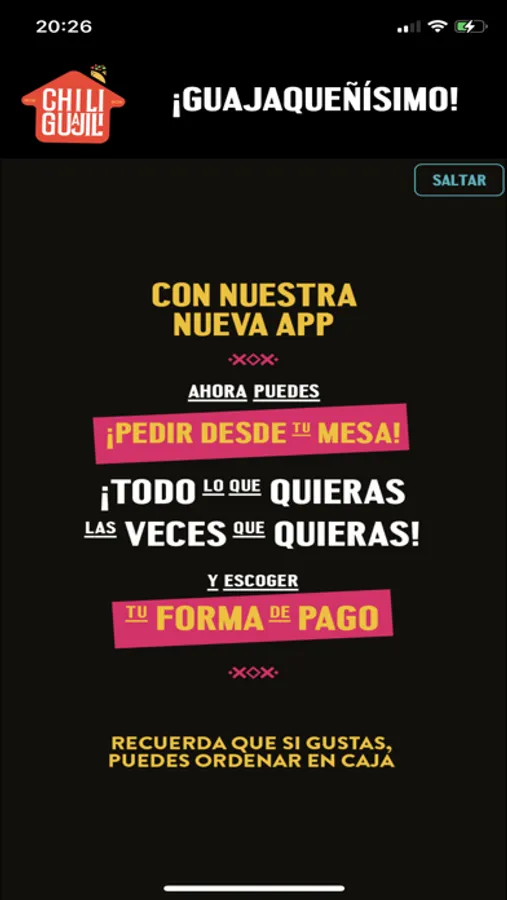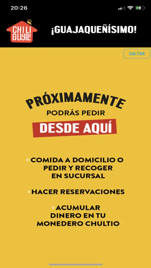 Desde la app podrás ordenar todos los productos de Chili Guajili, podrás ordenar en restaurant, a domicilio, ordena y recoge en tu sucursal preferida, aparte tu mesa y controla tu monedero chili.