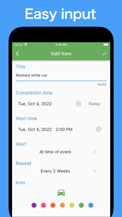 - You can easily add today's date to the completed date by swiping the item in the "Done" list to the left.