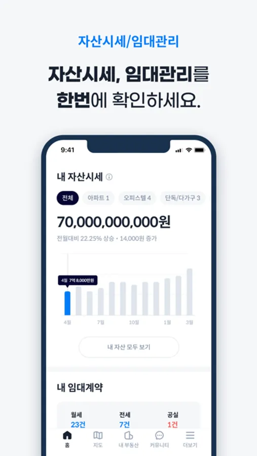 내 자산과 주변 시세 변화에 능동적으로 대처하고 효율적으로 관리하세요.