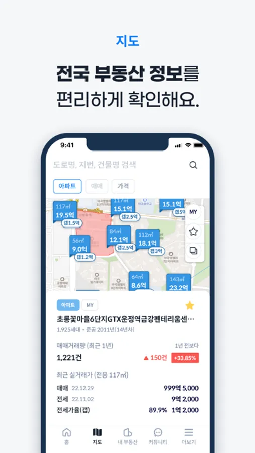 ■ 지도로 빠르게 내 자산과 주변 부동산의 실거래가를 확인하세요.
