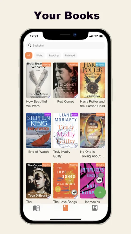 Add books, e-books or audiobooks to your bookshelf.