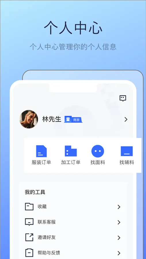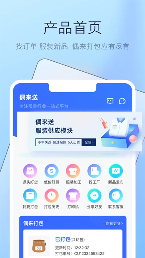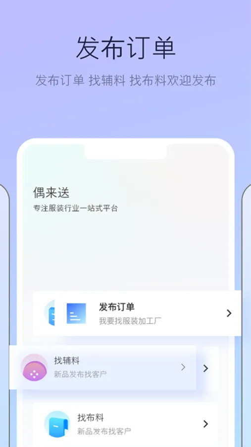 随时随地找订单、找工厂、找辅料、找面料、管库存、做销售!