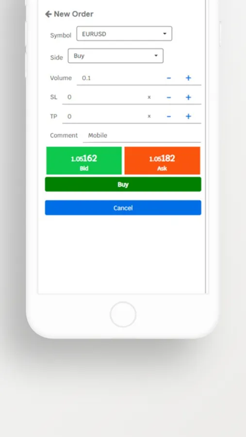 • Order placement to buy/sell/amend/cancel/market and limit orders.