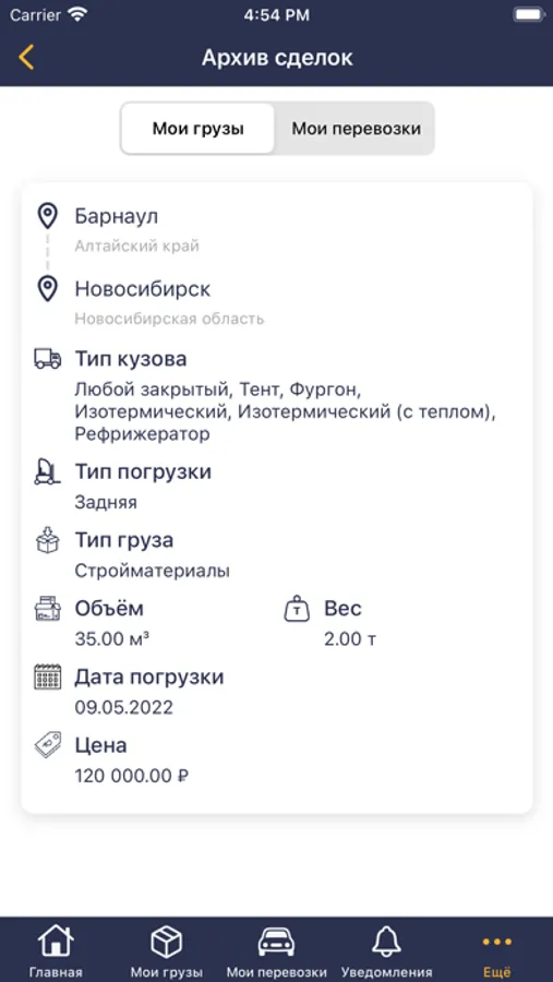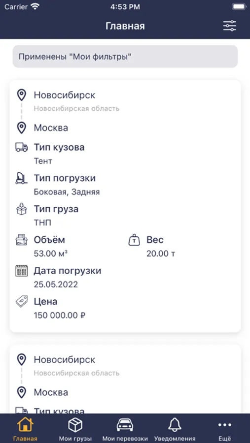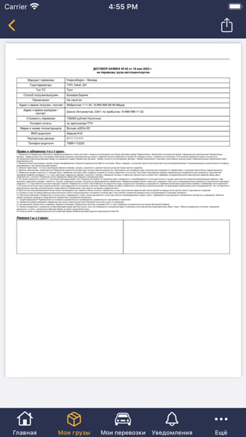 - Простота публикации грузов и поиска загрузок