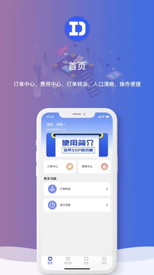 1、首页:订单中心、费用中心、订单转派,入口清晰,操作便捷;