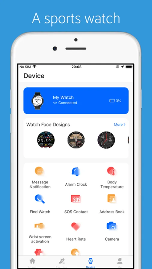 ● Set up the watch's time system, watch face, alarm clocks, phone book, emergency contact, do not disturb, and turning on the watch screen when raising the wrist