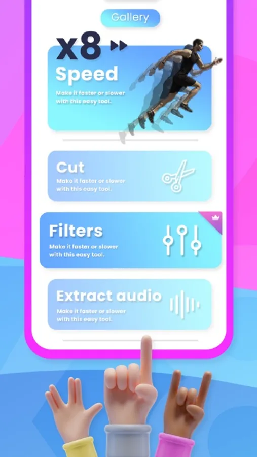 Discover creative video editing tools to create professional videos. This app provides a versatile set of video editing tools, enabling you to do simple video playback speed adjustments with a rich library of visual effects. It also supports all common video file formats.