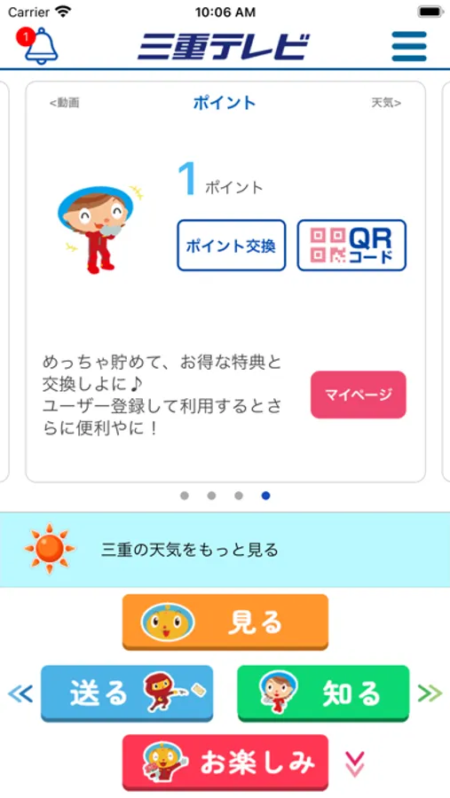 プレゼント応募や番組への投稿なども簡単にでき、三重テレビアプリを開くたび、投稿するたびに増えるポイントを貯めて豪華賞品もゲットしてください。