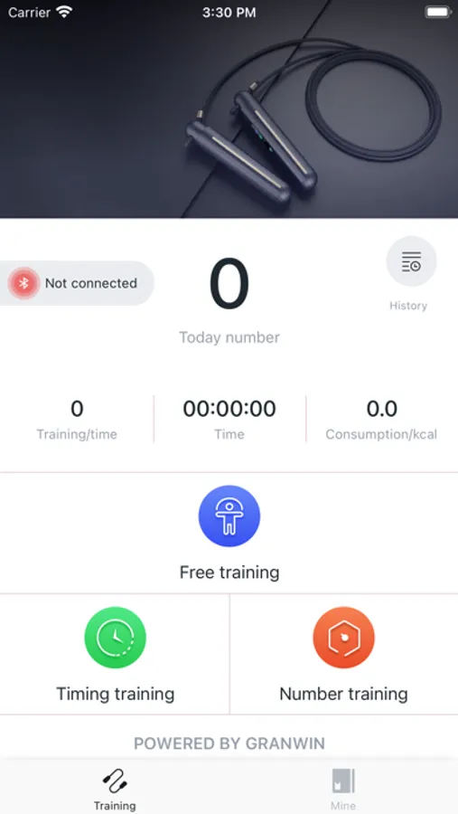 Smart rope skipping APP, including 3 training modes, free training, timed training and timed training.