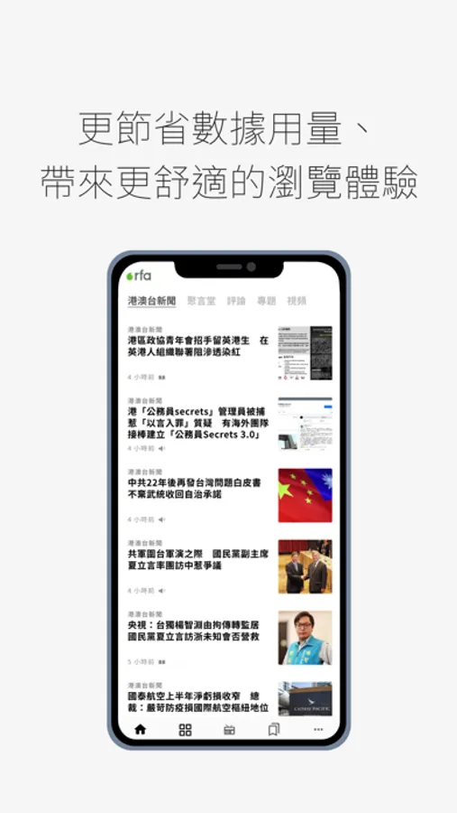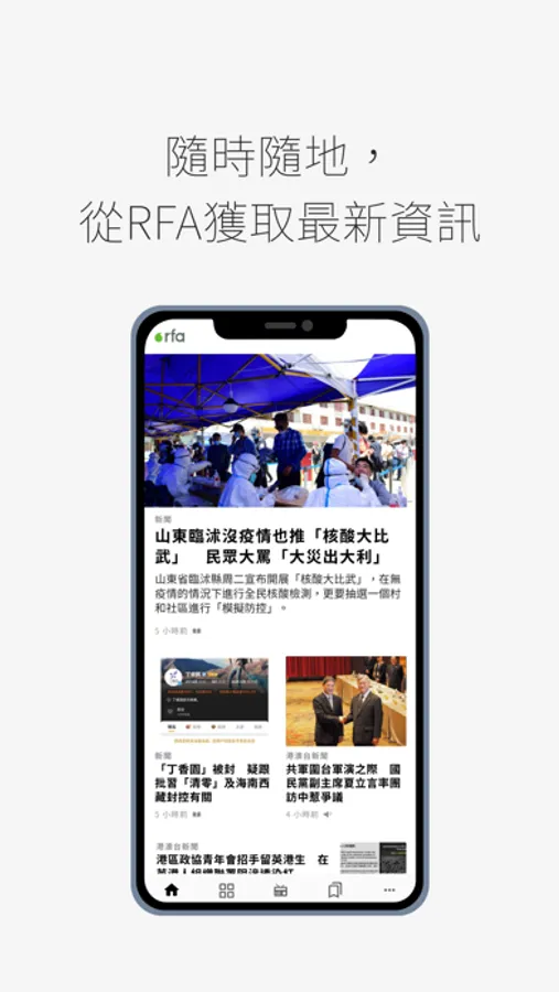 RFA應用程式的設計尊重您的私隱和安全。想了解更多?請閱讀我們的私隱條款。