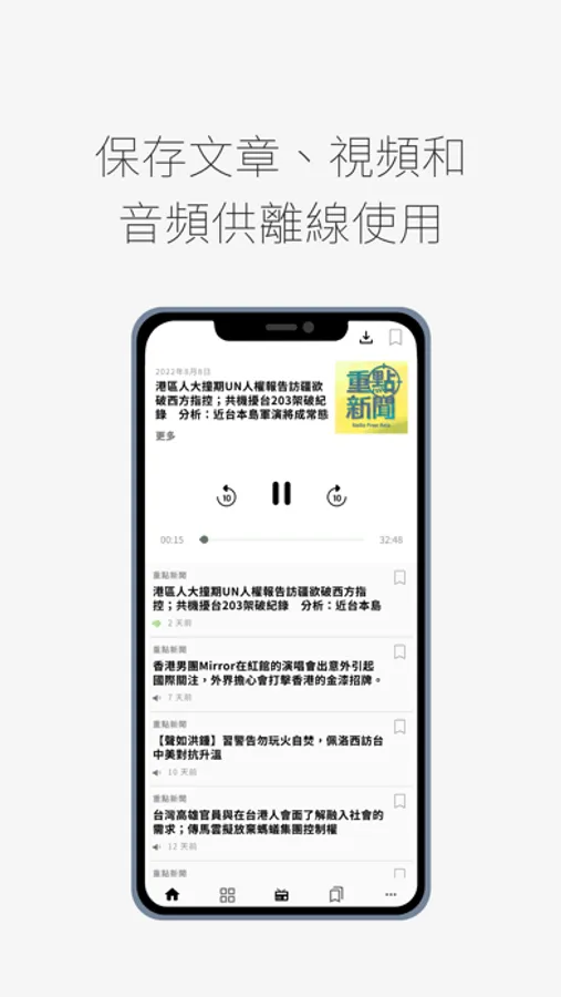 - 儲存文章、影片和音頻供離線使用