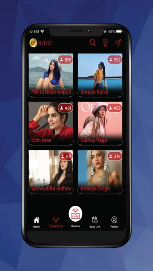 Watch live singing and dancing 24/7. Interact with creators through live chat, audio and video call.