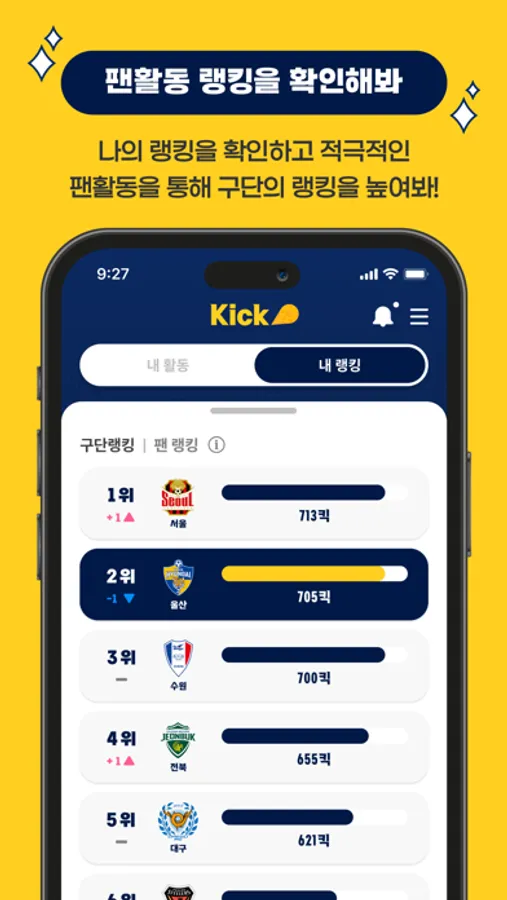 1. Kick을 통해 K League 팬들의 활동을 인증할 수 있습니다.