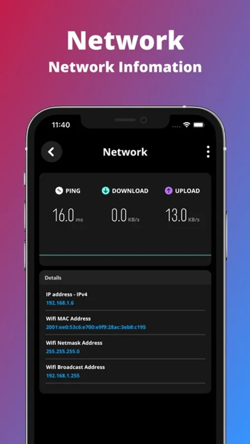 - Network : IP Address, Gateway, Subnet Mask, DNS, Lease Duration, Interface, Frequency & Link Speed