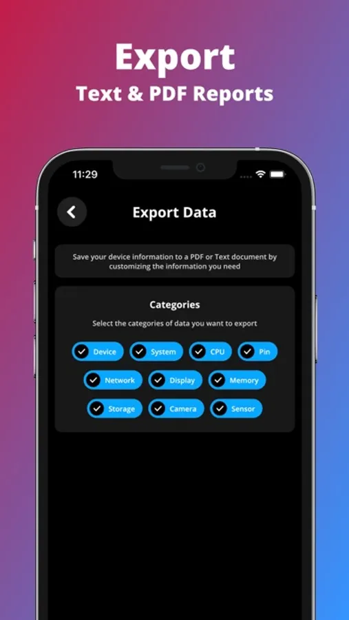 - Export Reports : Export customizable reports, Export Text Reports, Export PDF Reports