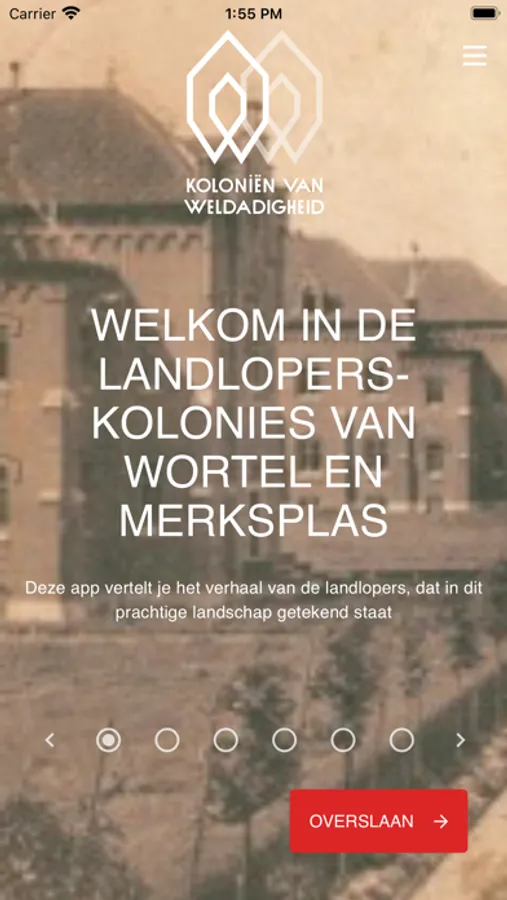 Kempens Landschap brengt het verhaal van de landlopers opnieuw tot leven in het 1000 hectare grote historische landschap van Wortel- en Merksplas-kolonie. Lieven Van Gils, ambassadeur van de Vlaamse landloperskolonies, verwelkomt je in het prachtige landschap, dat helemaal vormgegeven werd door de landlopers die hier tot in 1993 geleefd en gewerkt hebben. Door middel van historisch beeldmateriaal, kaarten, getuigenissen, anekdotes, luchtbeelden enz. beleef je het verhaal van de landloperskolonies in het landschap zelf, te midden van het imposante erfgoed, uitgestrekte bossen, landbouwvelden en de majestueuze dreven die de kolonies doorsnijden. Download de app voor je vertrekt!