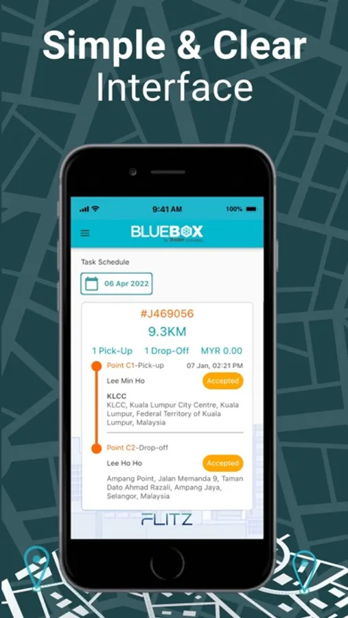 Through the Bluebox x Flitz Agent App, agents/drivers/team members will get all the assigned task details by the company instantly and to complete the tasks with simple steps.