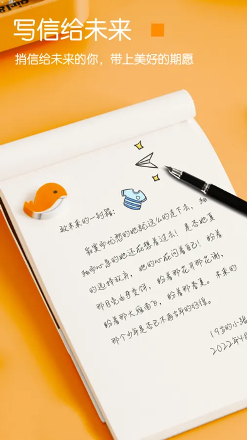 给未来写一封信,打开时空胶囊,在信中将是一个全新的未来的自己,给自己一个直面自己的内心的机会,让生活变得更加有滋有味