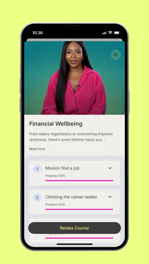 - Bite-sized learning recommendations that you can consume on the go, based on everything from sustainable investing, to money and relationships