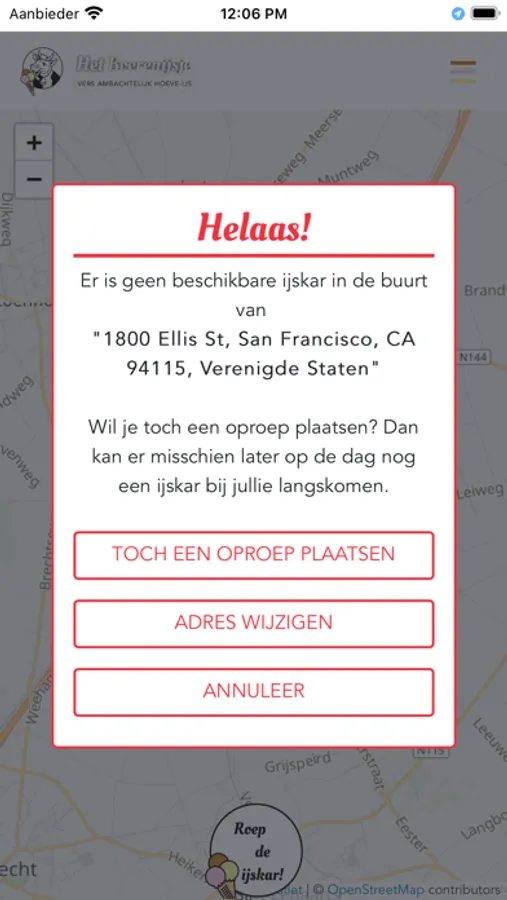 Hoor je onze ijskar maar zie je ze niet? Kijk dan live op onze tracker waar de ijskarretjes zijn. Ben je net te laat of wil je een ijsje van de ijskar uit de buurt? Probeer dan een ijskarretjes op te roepen met onze "Roep de ijskar" knop! Onze chauffeur krijgt dan je locatie te zien, en als er tijd is om langs te komen, ontvang je een berichtje!