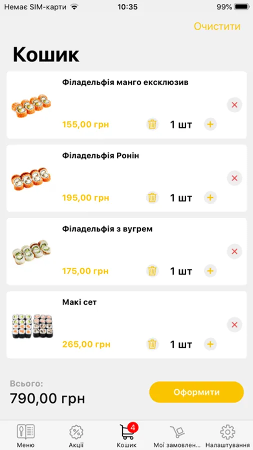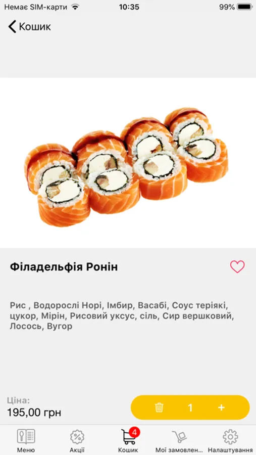 З додатком Ronin Sushi замовляти сети, роли та інші страви дуже легко, оскільки в додатку доступні детальні описи і фотографії страв